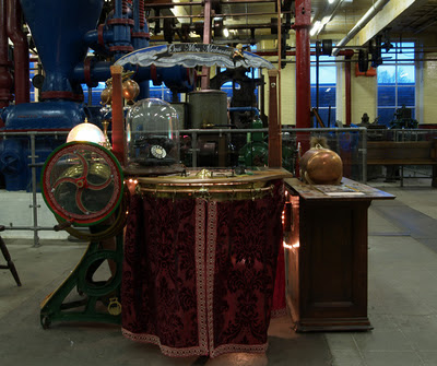 The table has lots of mechanical bits and pieces for people to explore, moving scrolls, a sheep race, drawers and cupboards to look in, secret buttons, spy holes to find and a game to play involving a spinning disc and cards.